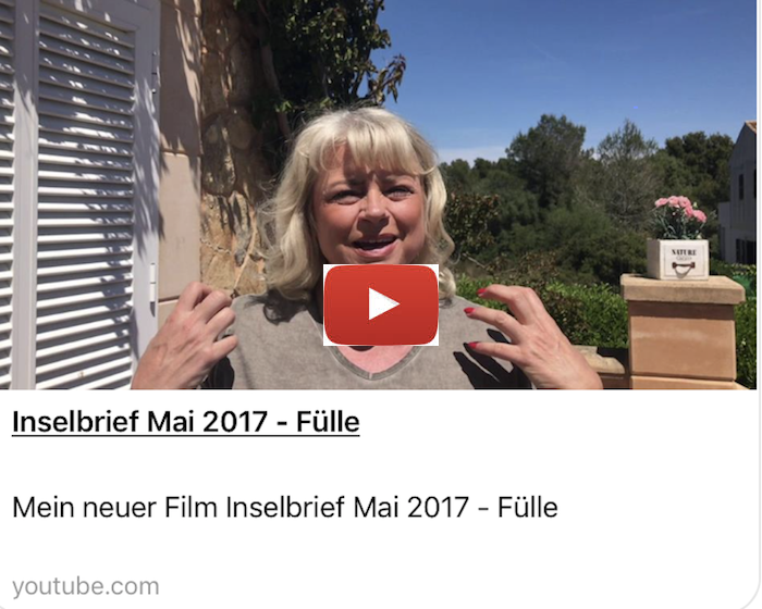 Ich freue mich sehr, dass ich Dir heute meinen ersten Inselbrief als Videodatei prästentieren darf. Nach viel Übung, vielen Aufnahmen, viel Schneiden, viel Ausprobieren bei Youtube und meinem Newslettersystem, bin ich nun total stolz, dass ich es endlich geschafft habe. Mein erstes eigenes Video ist online!!!